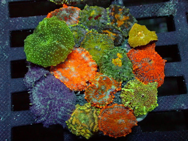 Rhodactis/Discosoma Mushroom Garden, ihr erhaltet einen bunten Stein wie auf dem Bild, viele verschiedene Farben, von allem was dabei, auf jedem Stein mindestens 10 Scheiben